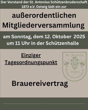 Am Sonntag dem 12. Oktober 2025 findet um 11 Uhr eine außerordentliche Mitgliederversammlung statt.